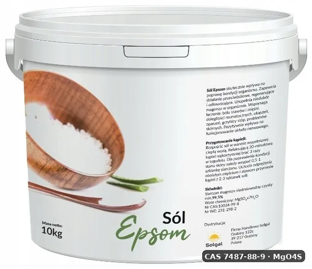 Siarczan magnezu to sól Epsom, stosowana w kąpielach i do pielęgnacji skóry. Wzór chemiczny: MgSO4. Cena: 50.47 PLN.