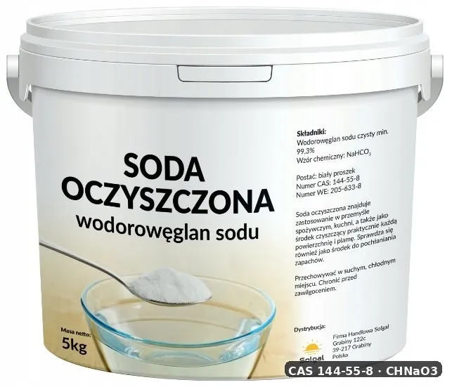 - Inne nazwy: wodorowęglan sodu, soda piekarnicza, bicarb